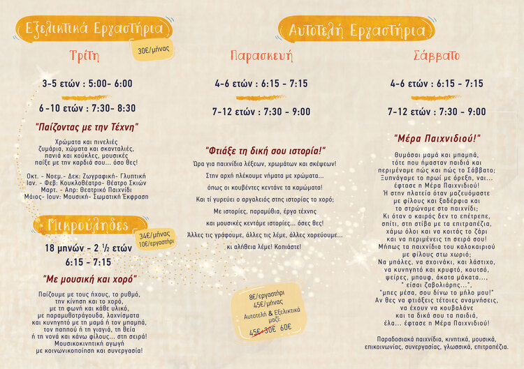 Αυτοτελή Εργαστήρια Παρασκευή και Σάββατο