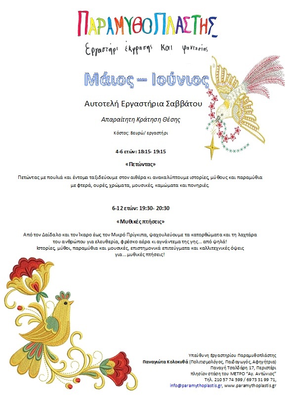 Αυτοτελή εργαστήρια Σαββάτου για Μάιο και Ιούνιο